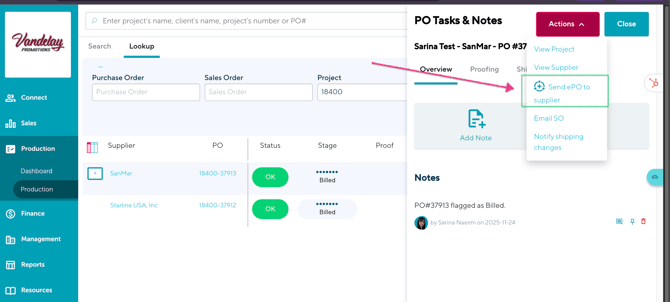 1. In the Purchase Orders tab, review the PO details and click Send to Supplier