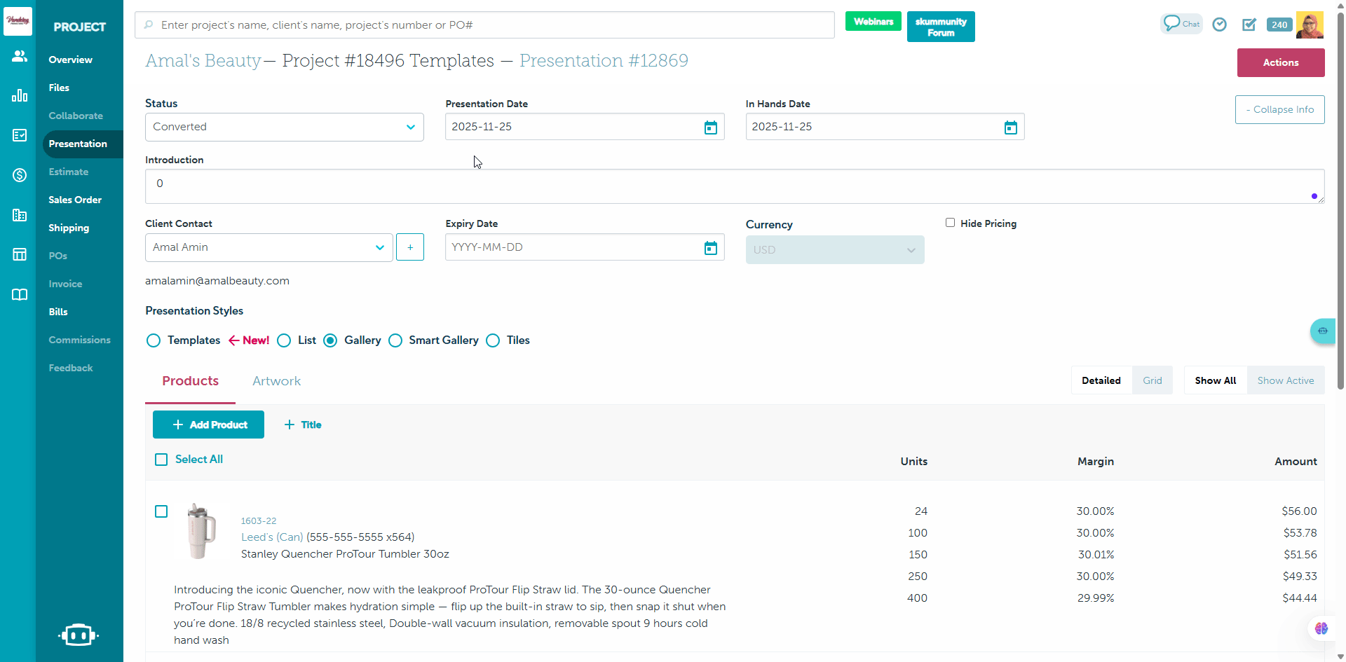 Smart Gallery presentations are a one-time order option. Your client cannot create multiple sales orders from one Smart Gallery presentation.