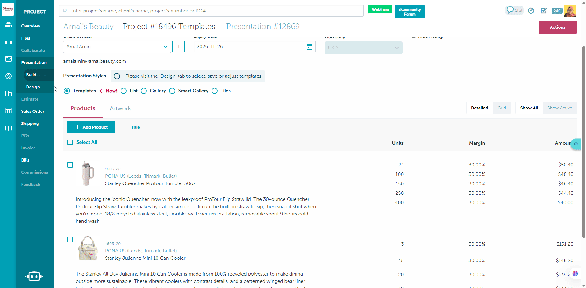 3. Customize your presentation design as you would in your Shop using the Template Picker and Design