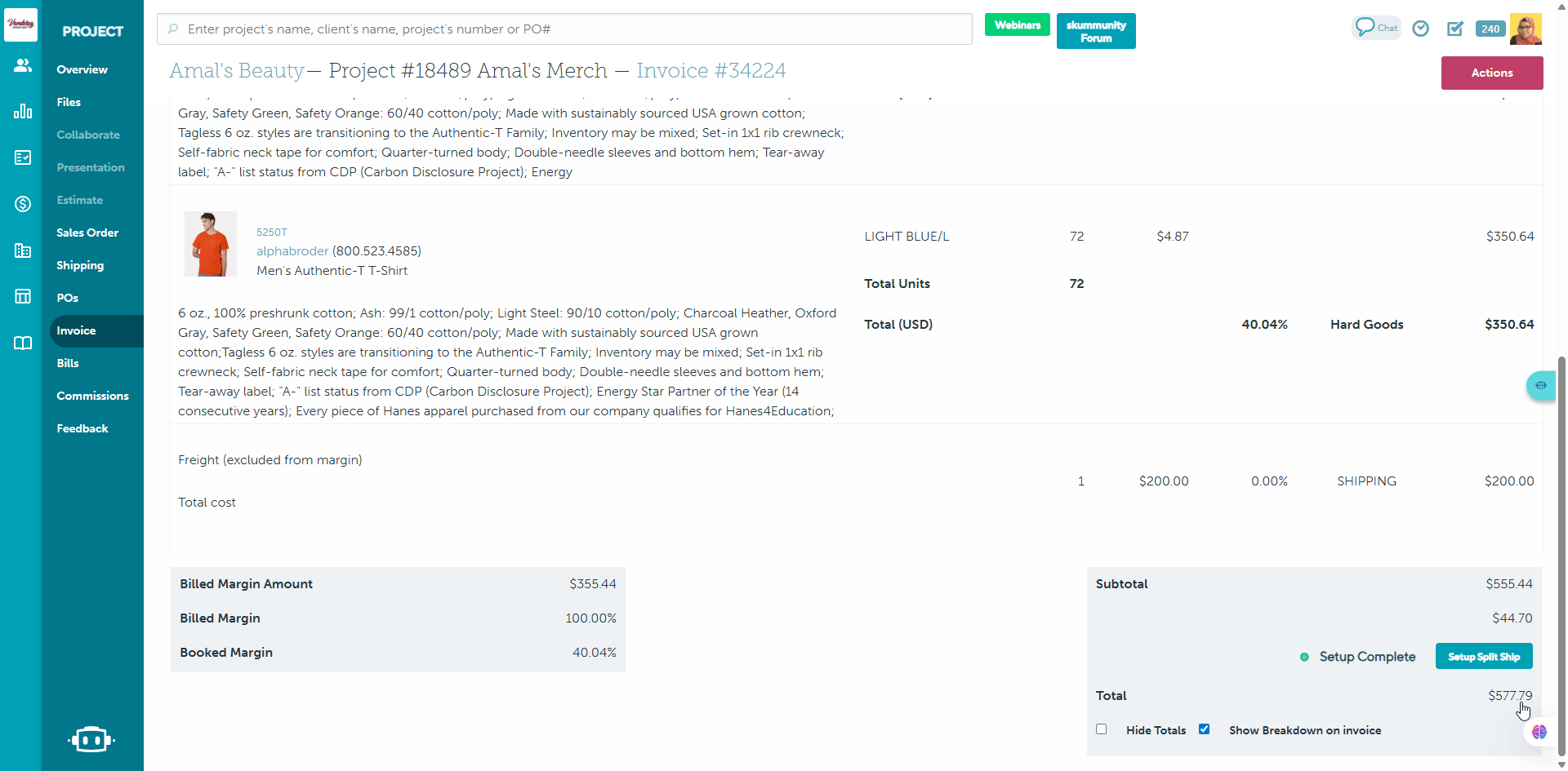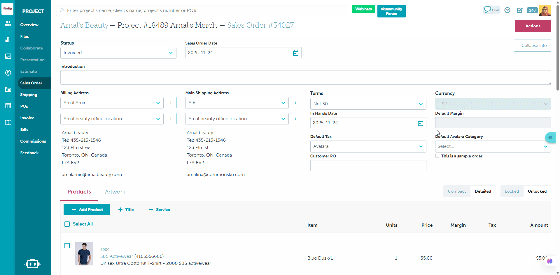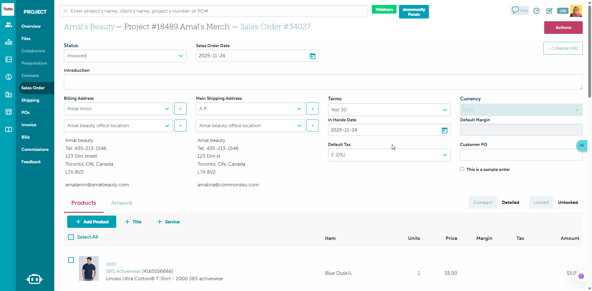 Create and prepare your Estimate, Sales Order or Invoice in commonsku as you normally would.